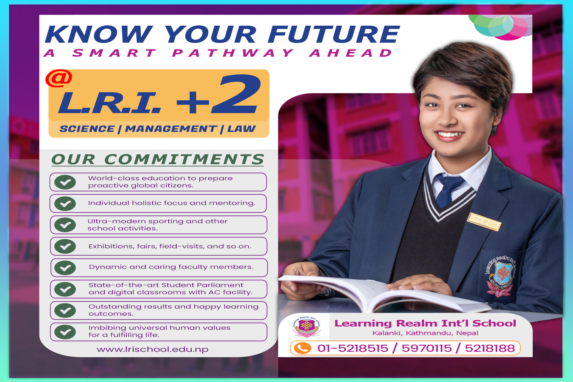 L.R.I. +2 Science, Management, and Law departments are now open for visits and enquiries for this academic Intake 2081.